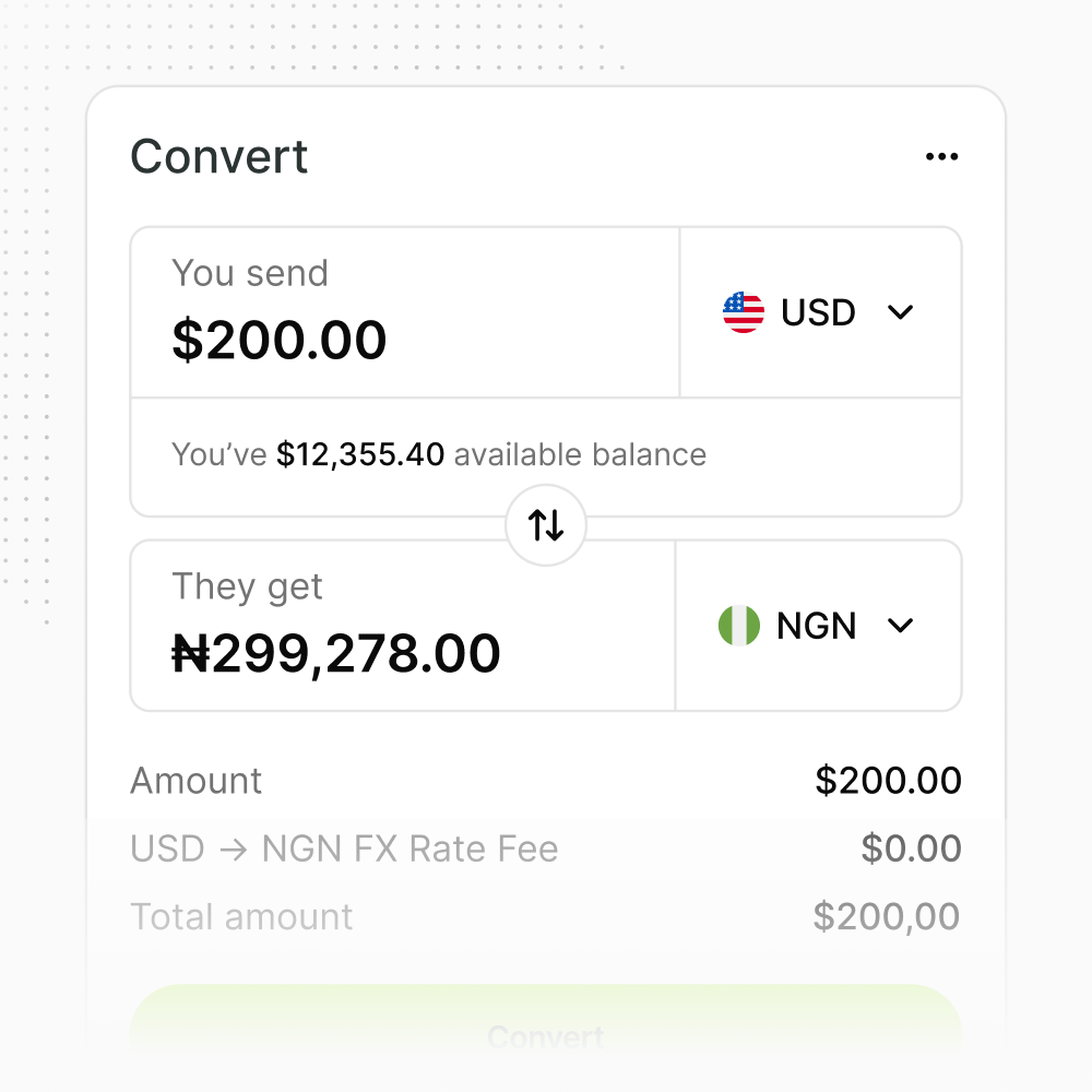 Transparent foreign exchange with institutional pricing, real-time rates, and full audit trail for cross-border value movement.