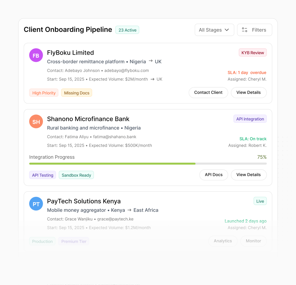 Go to market in months, not years. Access banking infrastructure without building or maintaining your own compliance and regulatory relationships.
